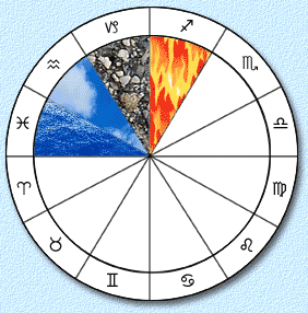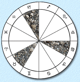 in order to show their strength. Earth: Earth requires us to stay grounded, to be practical and results oriented, to stay focused on the details, to build structure to support our impulses and ideas. Earth tells us, 'I'll believe it when I can hold it in my hand'. When frustrated, earth takes the form of resistance to input and the attempt to control circumstances with force. In its physical form, earth is related to mountains, rocks and soil: mountain climbing and gardening are a good way to connect with earth. A person with a predominance of Astrological earth (Sun, Moon, Ascendant or